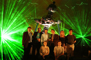 Lézer Fesztivál résztvevőinek a népligeti Planetáriumban. A Planetárium kupolájában milliónyi táncoló fénysugár ezernyi hajszalvonalból szőtt rubinpiros pókhalója keveredett ibolyakék es smaragd-zöld színekben ragyogó pontok halmazával. Penge-fénycsóvák hasítottak a térbe, sziporkázó csillagok lebegtek a levegőben. Mintha egy démon életre keltette volna egy absztrakt kiállítás képeit, ahol a festő tiszta, keveretlen színekkel, mikroszkópikus vonalakból alkotott művei - új életet kezdve - kiléptek volna a rámákból, hogy elfoglaljanak egy új, kézzel megfoghatatlan dimeniót. A láthatóvá vált zene ünnepén, a fény szerelmesei által létrehozott, - a színek, formák, hangok tobzódásából alkotott - elektronikus költemény bemutatása után, hangos ováció köszöntötte az előadás közreműködőit. A fesztivál vendégei közül sokan érkeztek Németországból, ahol a hasonló fény-művészeti kísérleteknek már több évtizedes hagyományai vannak. A hagyományteremtés szándékával megrendezett fesztivál